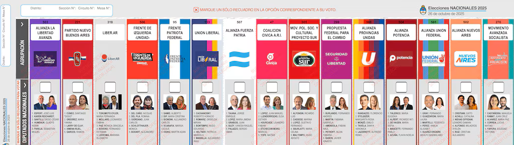 «MinutoG», 26 de octubre de 2025 El votante deberá marcar con un tilde o cruz el casillero correspondiente al candidato