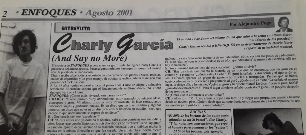 En agosto de 2001, hace ya más de 24 años, el creador de ´El Blog de Gesell´ Alejandro Puga entrevistaba a quien es, en muchas opiniones, el máximo exponente del rock nacional en Argentina.