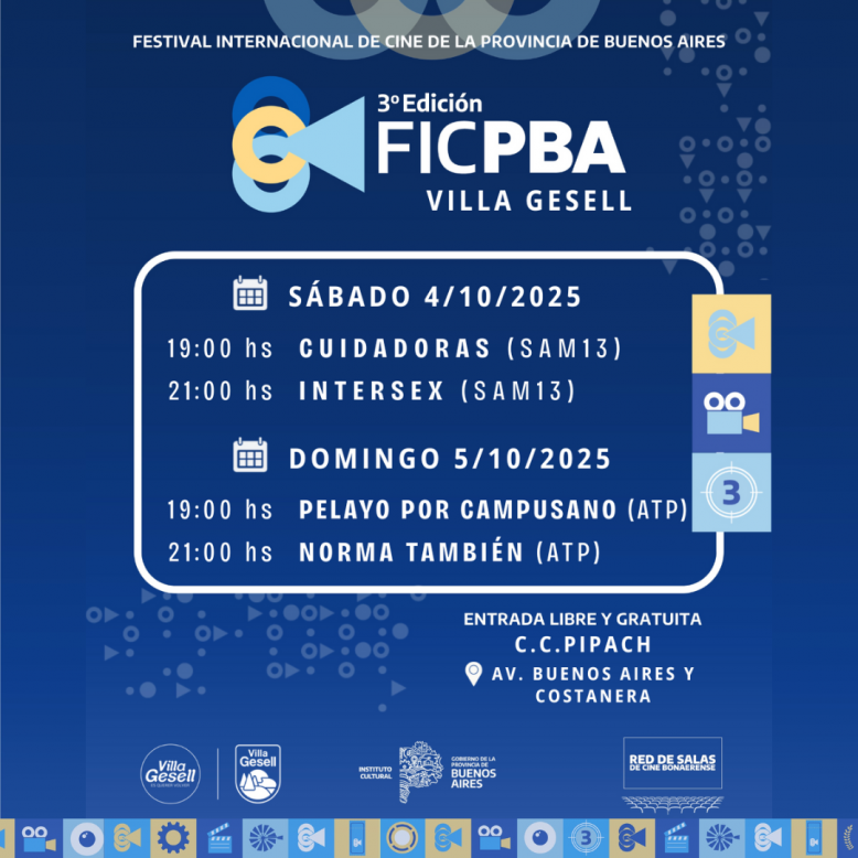 El Festival Internacional de Cine de la Provincia de Buenos Aires (FICPBA 2025), impulsado por el Instituto Cultural de la Provincia, inicia su recorrido por el territorio bonaerense y confirma su presencia en Villa Gesell. La ciudad será una de las subsedes clave de esta tercera edición, ofreciendo al público local y a los visitantes la oportunidad de disfrutar de una selección de cine nacional e internacional de primer nivel, con entrada libre y gratuita.