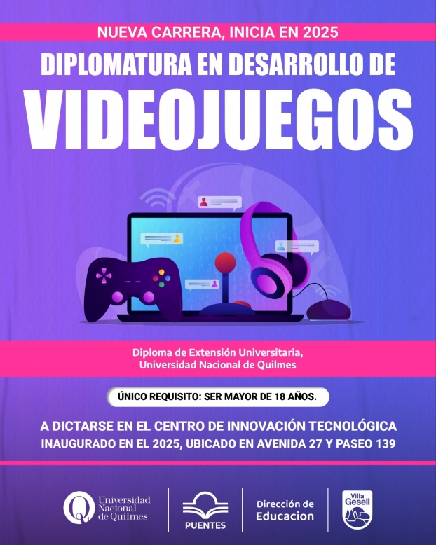 «Estamos muy contentos con esta nueva Diplomatura en Desarrollo de Videojuegos, que la idea es que empiece en 2025 y finalice este mismo año. Todas las propuestas que estamos impulsando son formaciones cortas, intensivas, con certificación universitaria que responden a las demandas e intereses de las y los jóvenes, en la mayoría de los casos oficios digitales con rápida salida laboral y la posibilidad de trabajar a remoto, es decir, sin tener que irse de Villa Gesell», destacó Maribel Tatta, Directora de Educación.