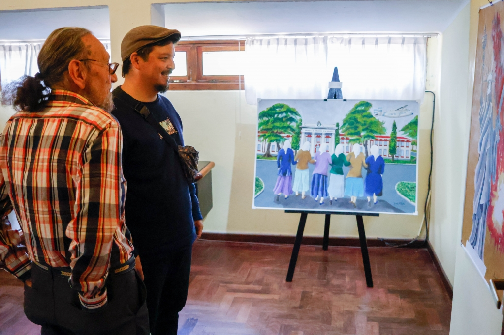 La muestra “Pareja de Pinceles” quedó inaugurada en el Chalet de Don Carlos, donde los artistas Isabel Mestres Oliver (“Mimo”) y Edgardo Fernández (“Barba”) presentaron sus obras “Sueño de Colores” y “Cambalache Remixado”, respectivamente, ante vecinos, vecinas y el equipo de Museos, dirigido por Cecilia Bosisio.